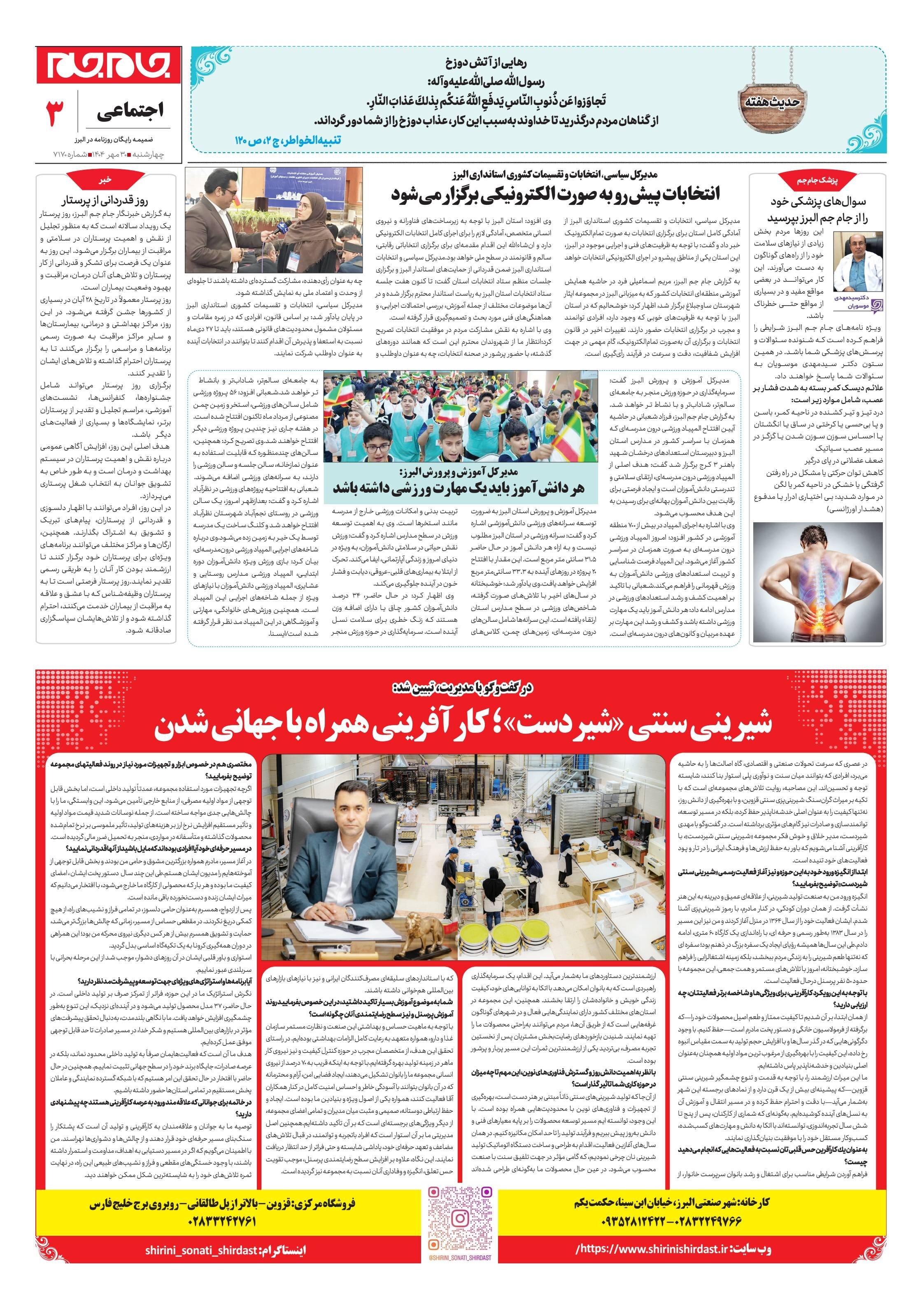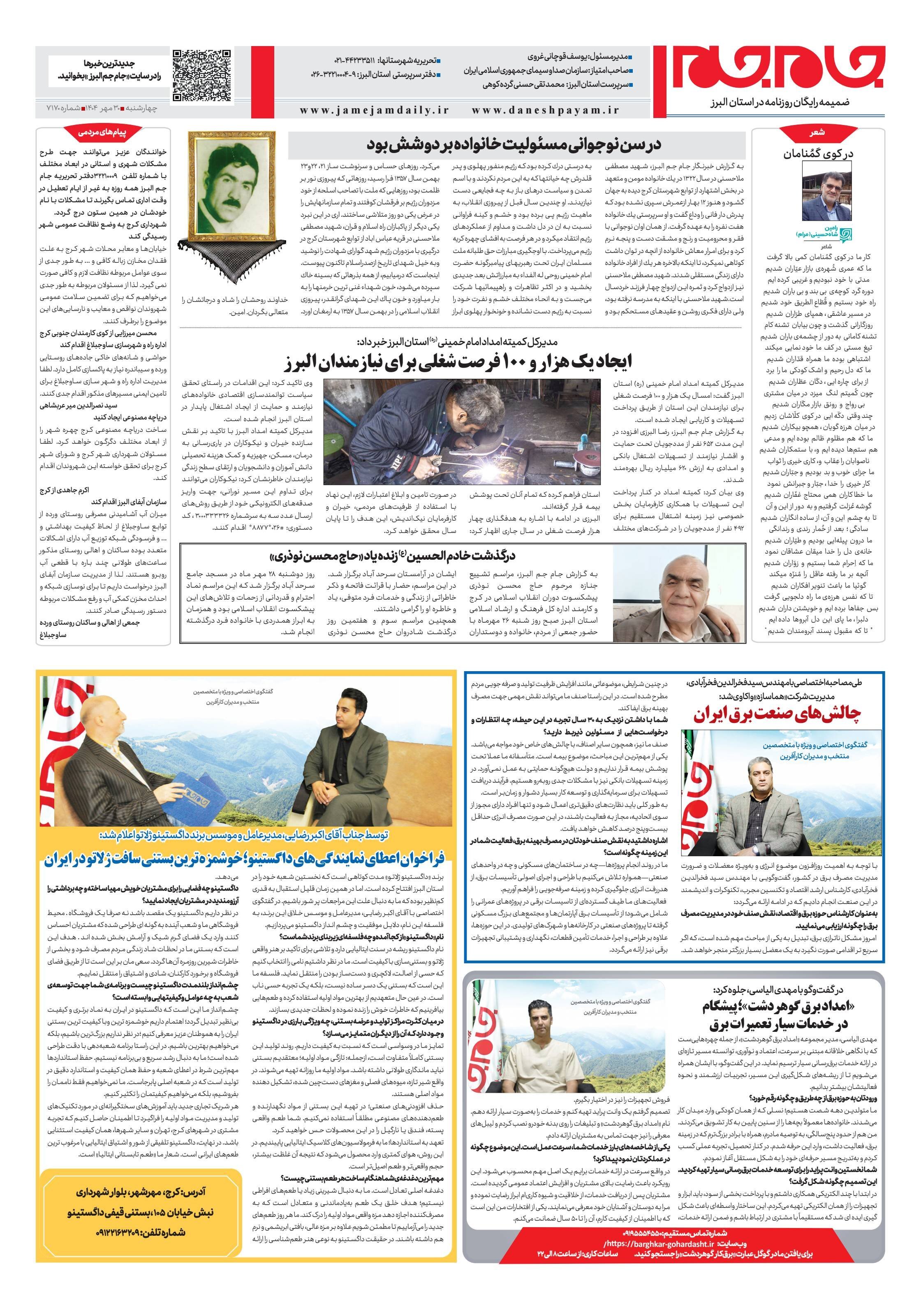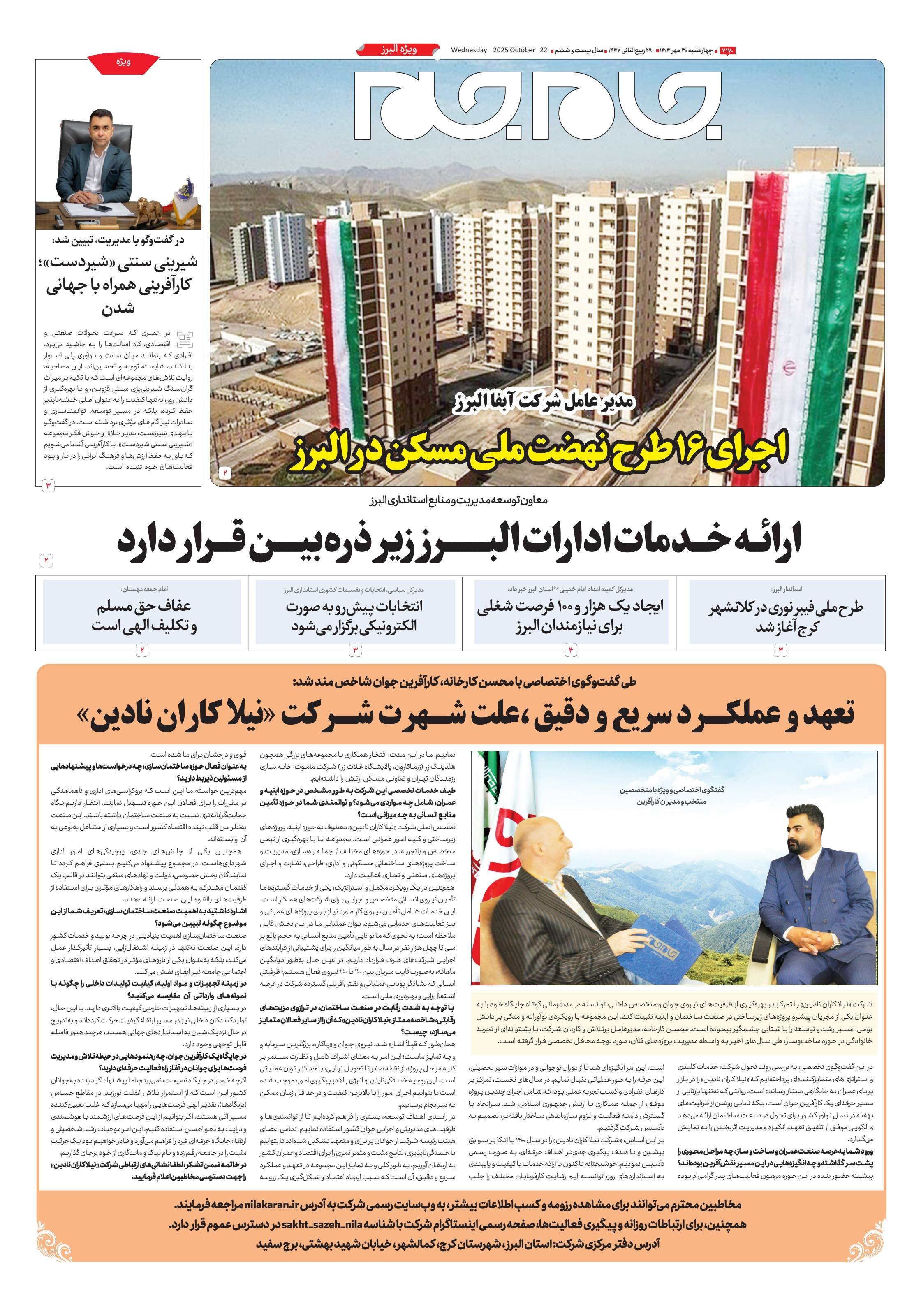 ویژه نامه جام جم البرز ۳۰ مهر ۱۴۰۴