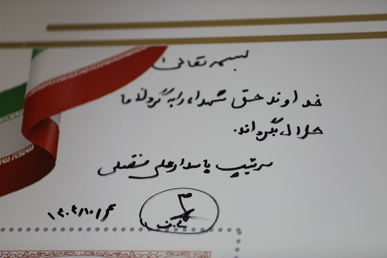 در این لحظهی بینظیر، با پایان کنگره ملی ۵۵۸۰ شهید البرز که در قالب هنر برگزار شد، دلهایمان پر از احساس و فخر است، چرا که در کنار هم در ۱۰ روز پربار، با برنامههای متنوع نام شهدا را گرامی داشتیم. آنان که با فداکاری و ایثار، امنیت و عزت میهنمان را بنا نهادند، وچراغ راه ما در مسیر پیشرفت و تعالی هستند. هر قطرهی خون شهید، نویدی است برای آیندهای روشن، و هر قدمی که برمیداریم، مرهون فداکاریها و ایثارگریهای آنان است.ای شهدا، شما قهرمانان بیادعا، نماد ایثار و شهادت، دلهای ما را به عشق و احترام پر کردهاید. امروز، با سرودن سرودهای وطن، با اشکهای جاری و قلبهایی پر از احساس، به شما میگوییم: ما راهتان را ادامه میدهیم، راهی پر از امید، عزت و سربلندی. راهی که شما برایمان هموار کردید.