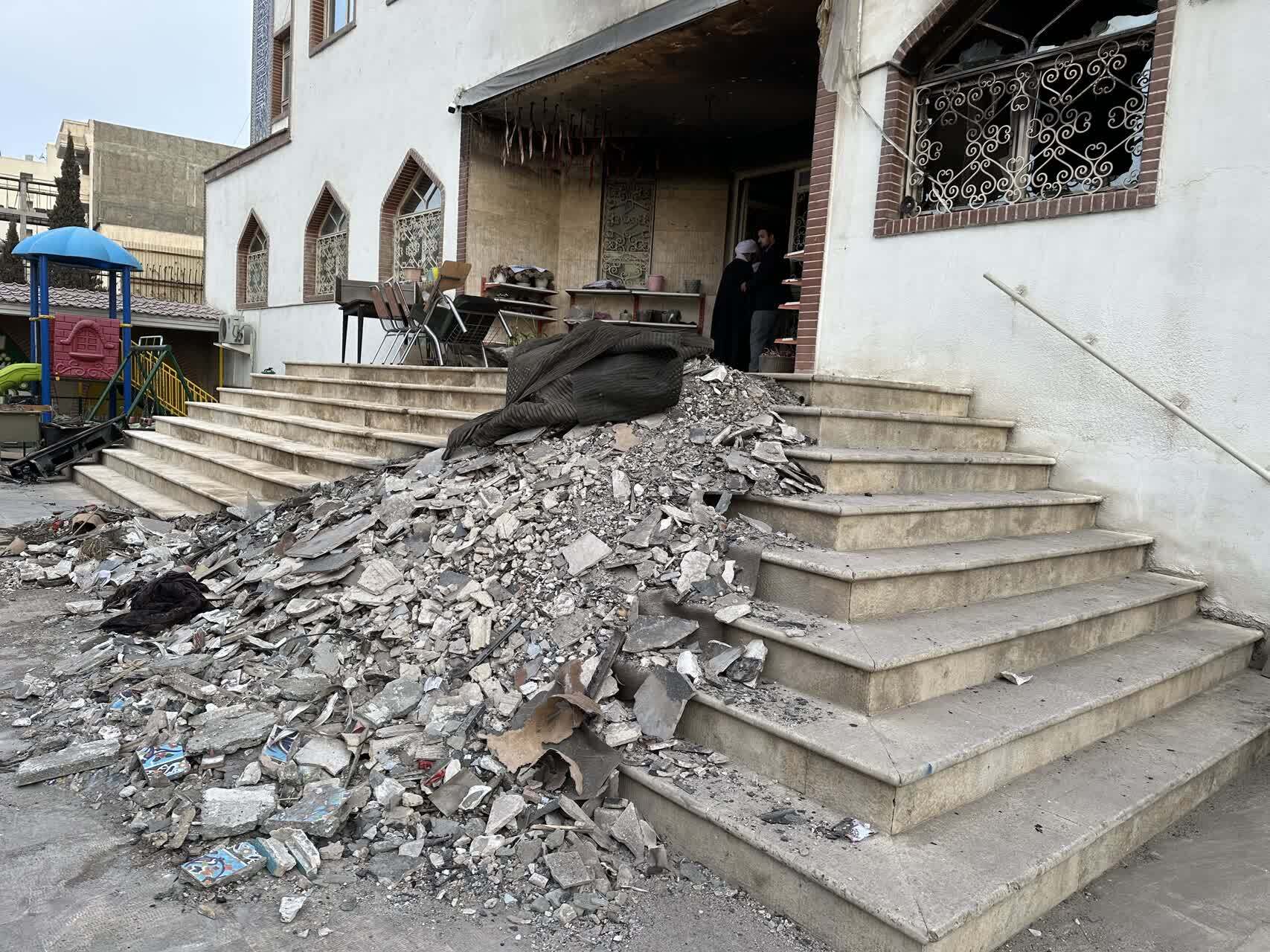 تصاویر پیشرو، بخشی از خسارات وارده به مدرسه علمیه عالی کوثر در پی این حادثه را به تصویر میکشد.